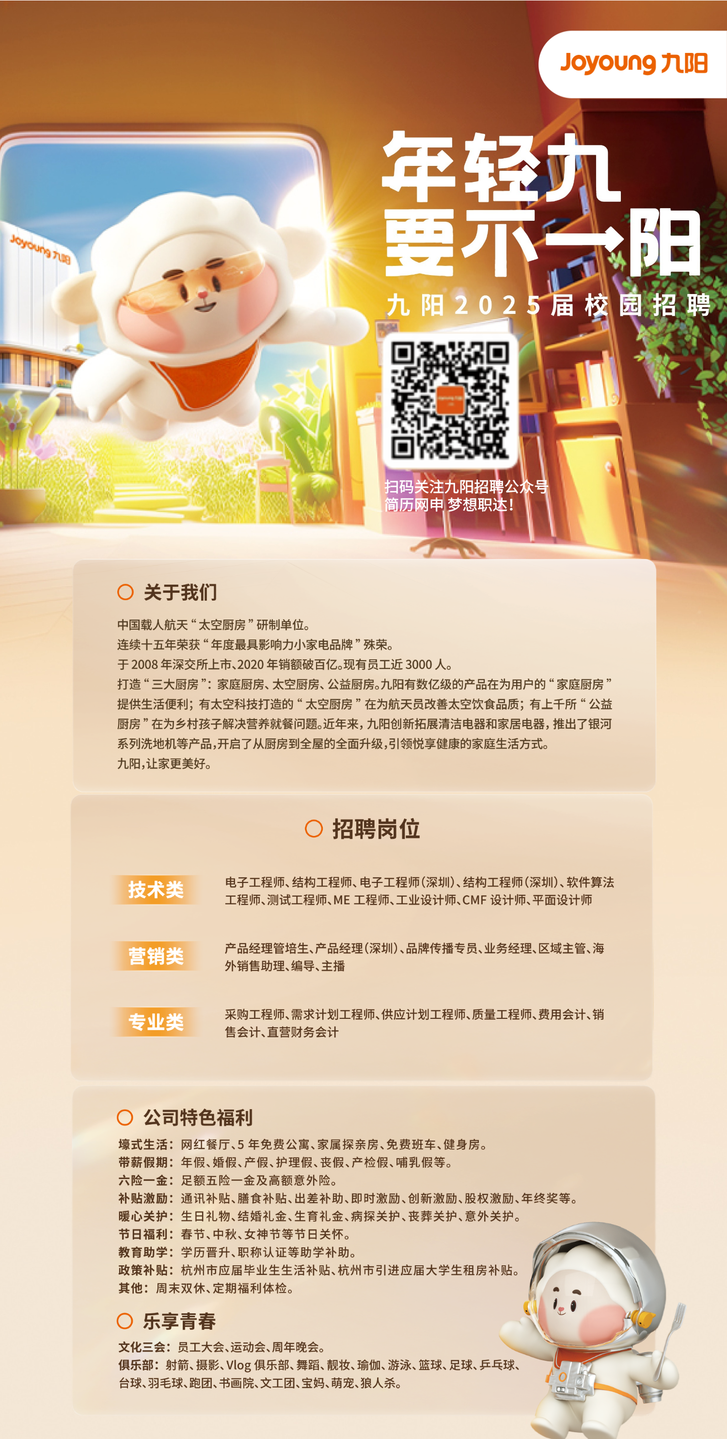 🤝九阳股份,期待你的加入!https://zhaopin.joyoung.com