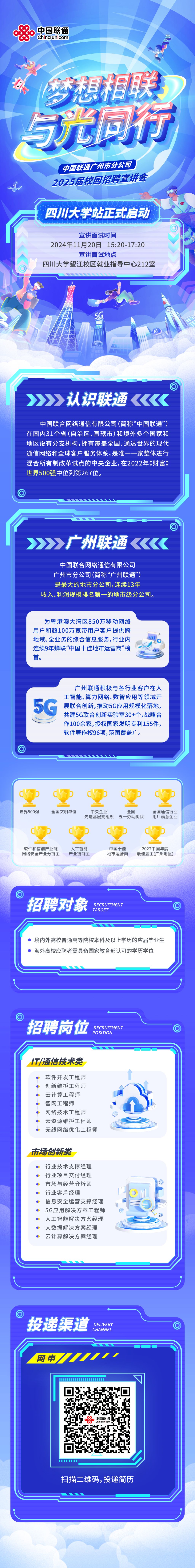 🎉📣重要通知!我校杰出校友力荐,广州联通莅临bat365在线体育登录进行专场招聘!广州联通不仅是: