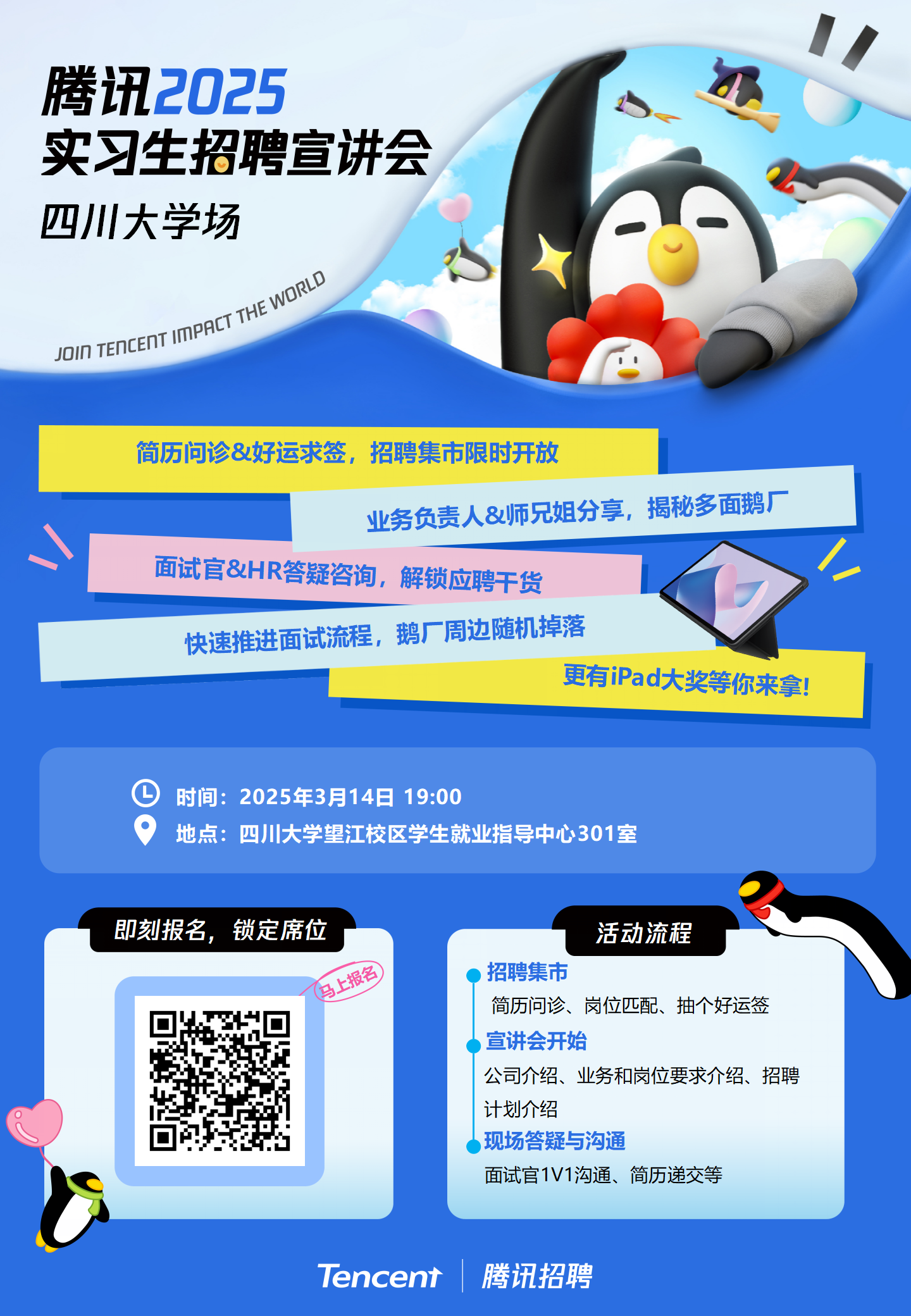 🔥腾讯2025实习生招聘宣讲会|四川大学专场倒计时5天!