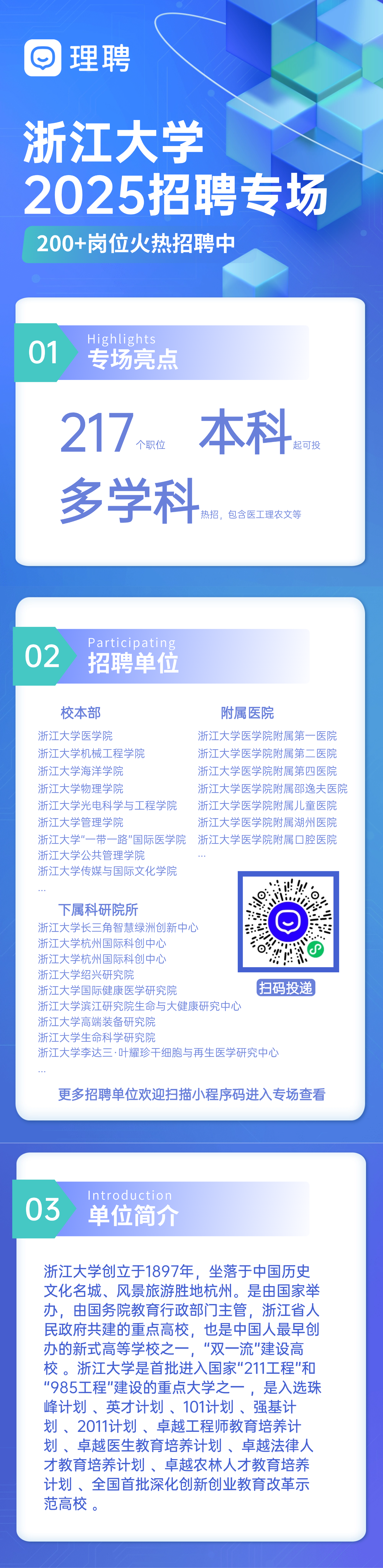 浙江大学及其下属的医院及科研院所,当前有200多个职位急招,本、硕、博都有岗位,包含医、工、理、农、文多学科