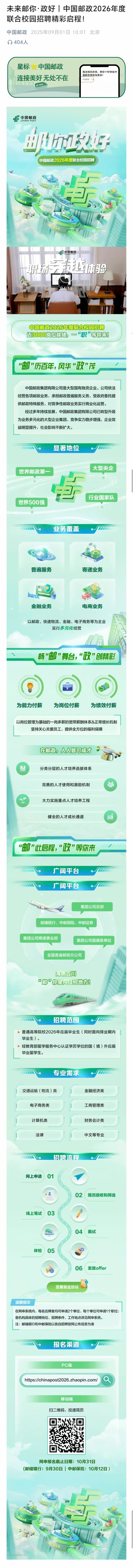 9月18日14:30就业指导中心301报告厅中国邮政2026年度联合校招
