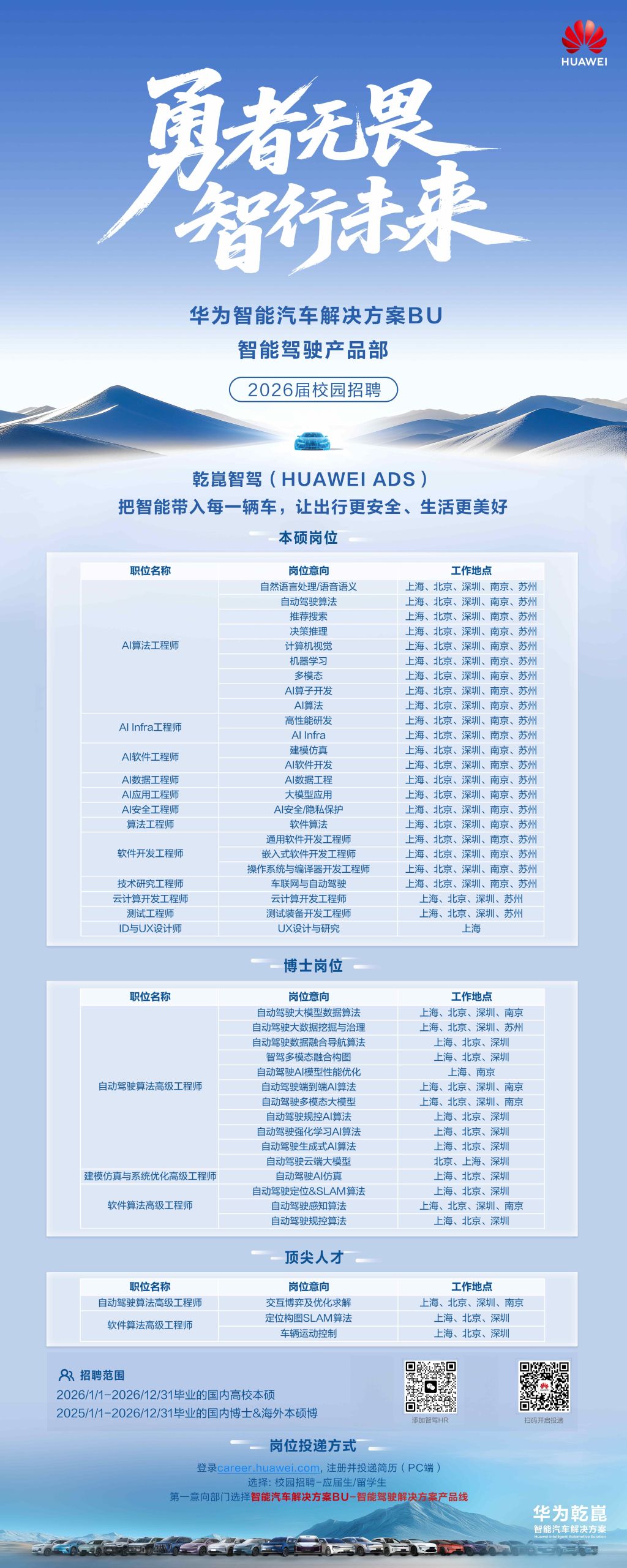 各位同学好,智能驾驶产品部 [本硕博]应届生岗位已上线👏🏻👏🏻👏🏻