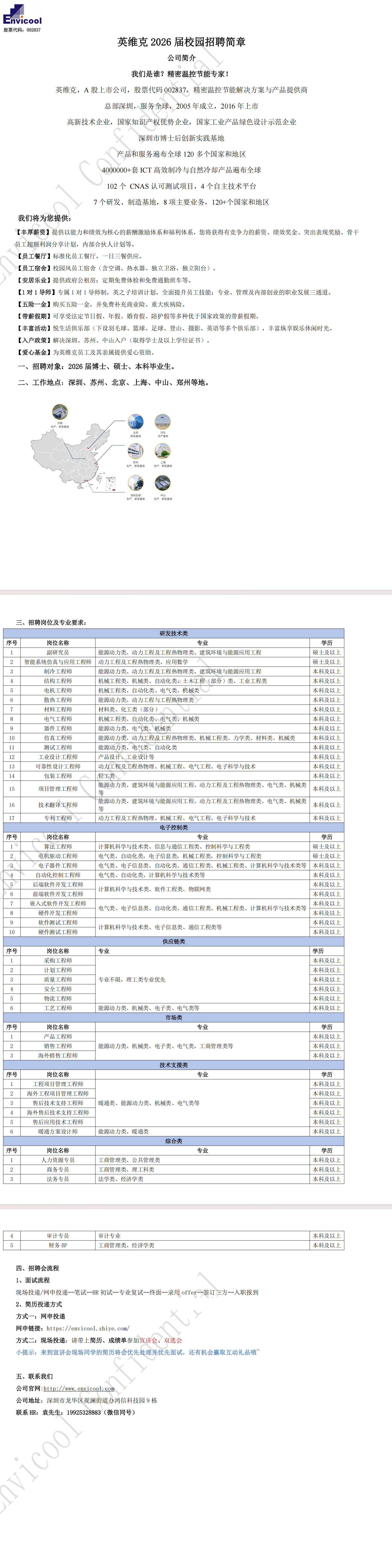 英维克成立于2005年,2016年12月29日登陆深交所,系国家级高新技术企业、2018福布斯亚洲中小上市企业榜入围企业。全国多家子公司,拥有4大自主技术平台,2个国家级测试中心和全国7大基地,立足深圳,辐射全球,累计超过3000000套ICT高效制冷与自然冷却产品遍布世界各大城市!