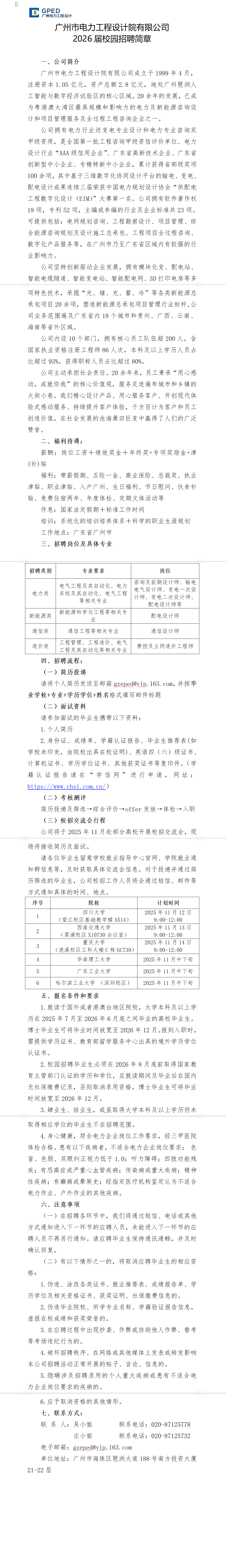 11月12日9:00-12:00 四川大学望江校区基础教学楼A514 广州市电力工程设计院有限公司2026校园招聘