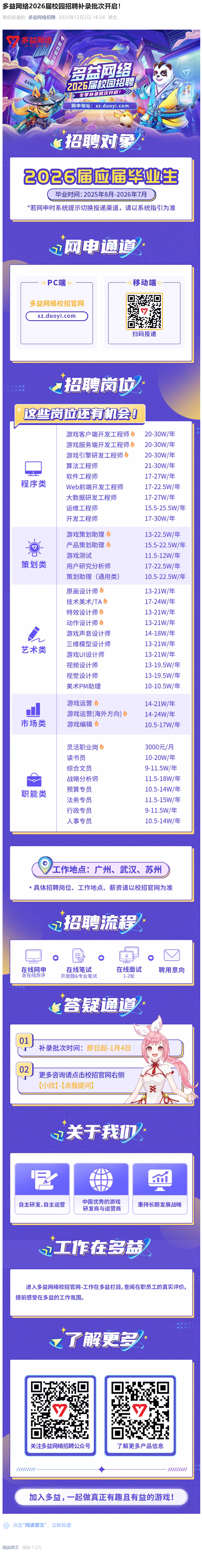 # 多益网络26届校招冬季补录批次开启!