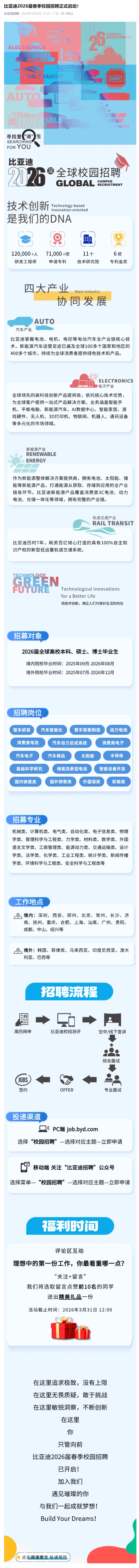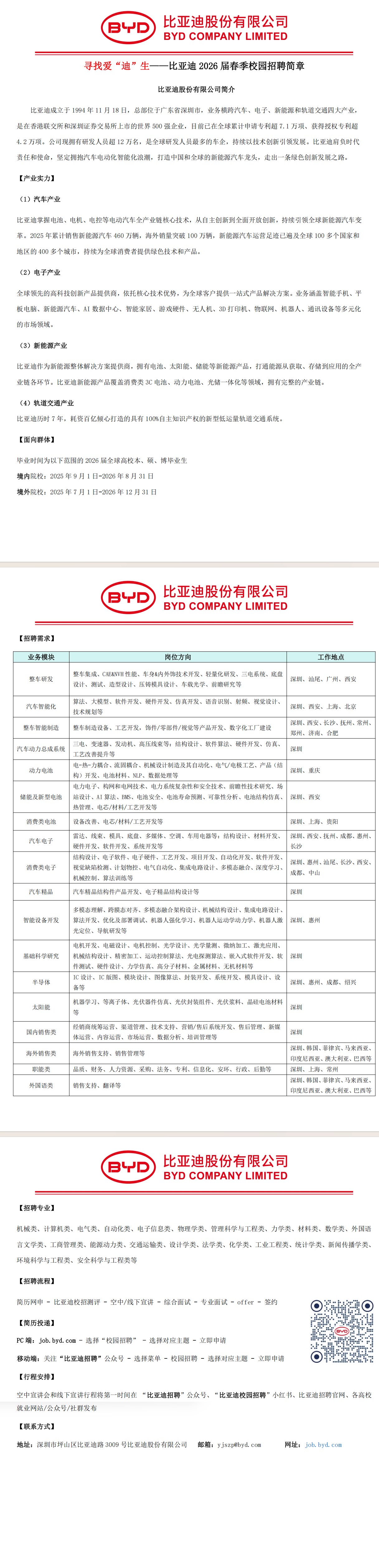比亚迪2026届春季校园招聘