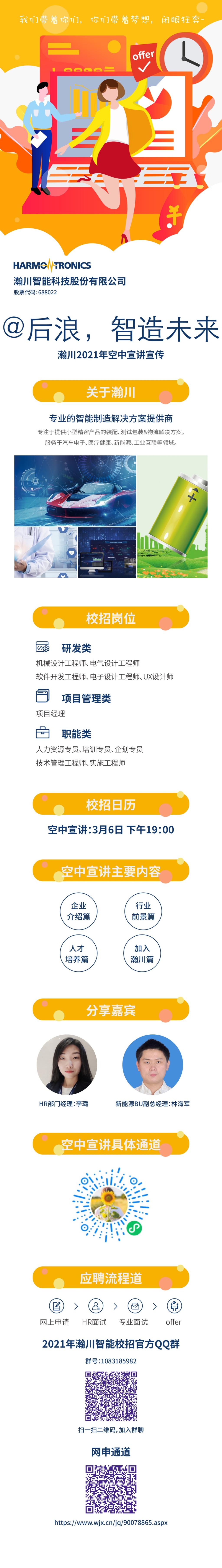 瀚川智能2021年春招开放上百个岗位,3月6日晚上19:00 首次空中宣讲,求职中的同学们看过来!