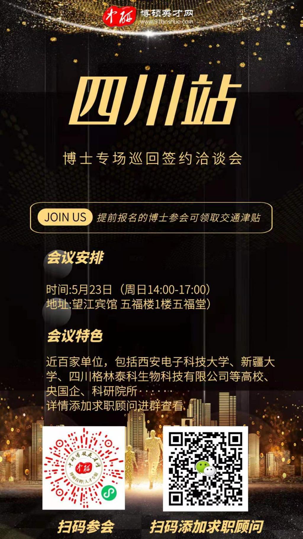5月23日14:00-17:00 望江宾馆五福楼1楼五福堂 博士专场巡回签约洽谈会——四川站