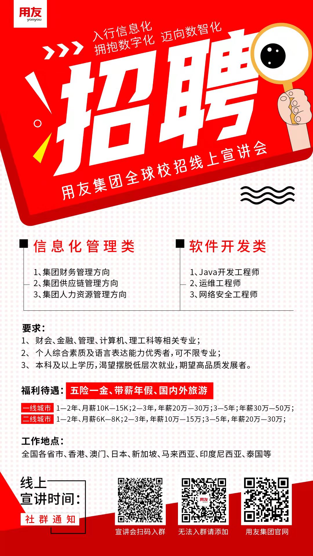 招聘执行单位: 用友人才产业基地(态盟科技集团有限公司)