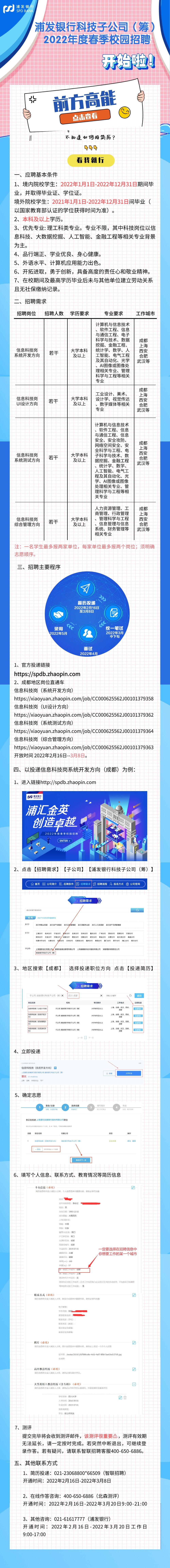 【线上宣讲会来了!-浦发银行科技子公司(筹)春季校园招聘】