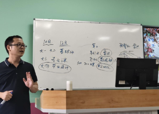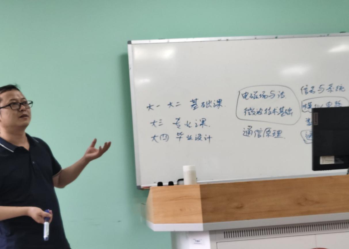 茶座会以程飞老师分享自己大学学习电子信息工程专业的经历拉开序幕。他向同学们简要介绍电子信息类下的三个专业分支,雷达天线是偏硬件方向,信号处理是偏软件方向,光学下的激光有许多应用,程老师也大致给同学们讲解了一下。对于同学们的一些疑惑,比如,“专业课学习对于科研是否有用?”程飞老师指出答案是肯定的。本科的基础课和专业课是为了我们以后的科研及工作打下基础,学习了理论知识才能更好地应用与实践。然后程老师从大学学习课程转向介绍大学的一些竞赛,比如大创、互联网+、挑战杯等等,鼓励同学们在本科阶段多多尝试,在准备比赛的过程中积累经验,学习一门新的技能,提升自我,不要荒废了大学时光,有了付出才会有收获,而且要提前做好生涯规划。最后程老师向同学们详细讲述了三个专业的具体应用,如导引头,雷达,电子对抗,芯片设计,无人机,预警机,数据链link16等等,并为同学们答疑解惑。