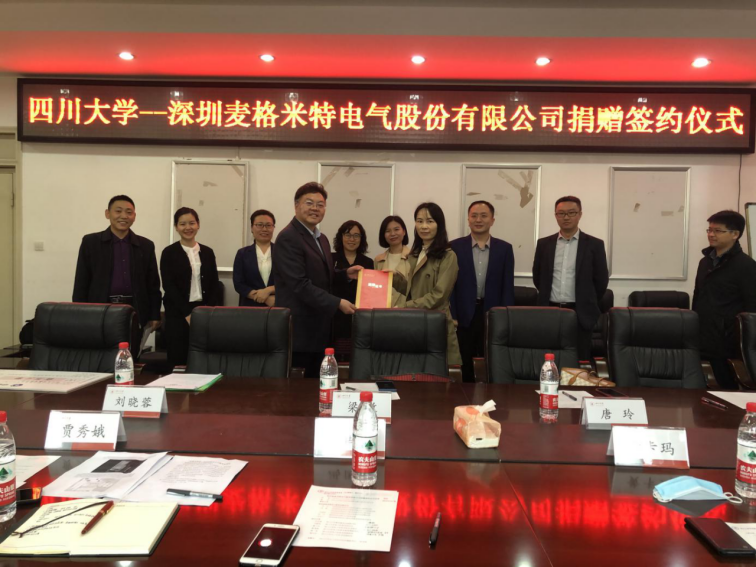 此次由深圳麦格米特电气股份有限公司向学校教育基金会的捐赠款,将专项用于支持四川大学bat365在线体育登录开展本科学生的科技创新竞赛工作。